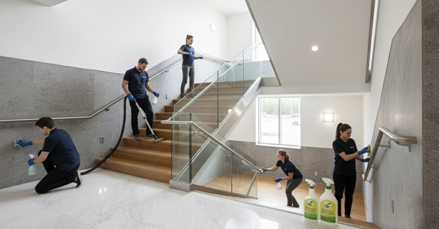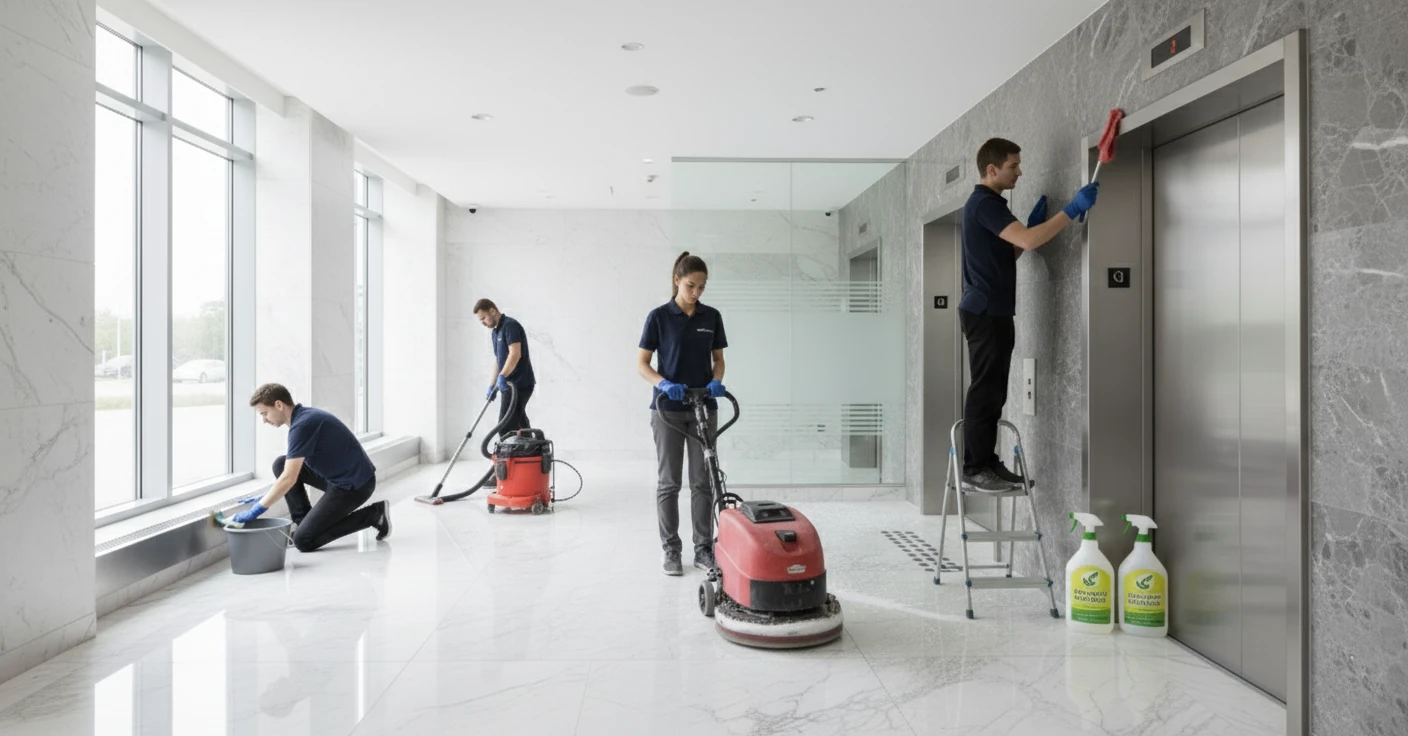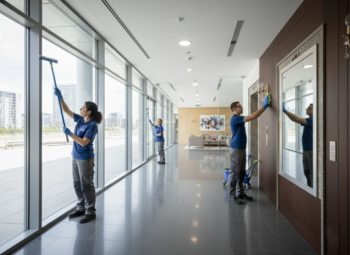 and deep cleaning for building entrances, hallways, lifts, staircases, and